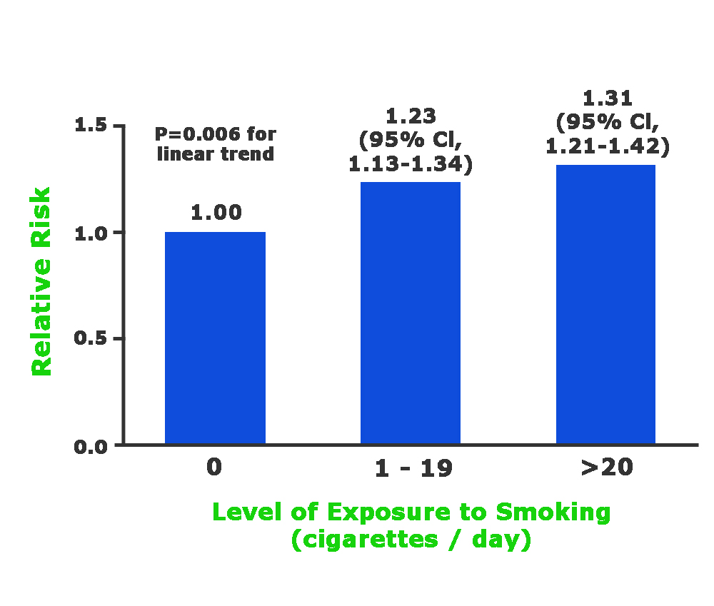 Does this bar cart show a correlation between number of cigarettes smoked, and the risk of CVD?