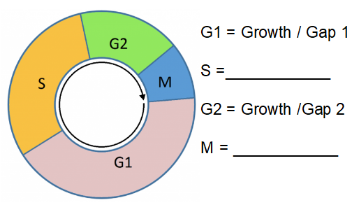 The diagram shows the cell cycle. What does 'M' stand for in the diagram? ( Spell it correctly)