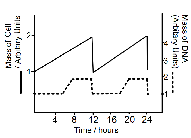 How long is one complete cell cycle on this graph?
