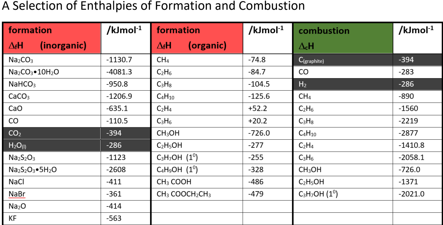 Using this figure and data from the 'Selection of Enthalpies of Formation and Combustion' shown above, calculate the enthalpy of formation ΔfH of liquid butan-1-ol