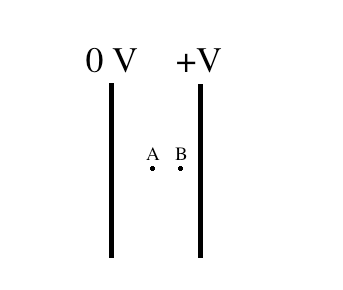 A potential difference V is applied across two parallel plates. A particle exactly halfway between the two plates at point A experiences an electric force F. The electron moves to point B which is halfway between point A and the right-hand plate. Which of the following is the electric force experienced by the electron at Y? [image]