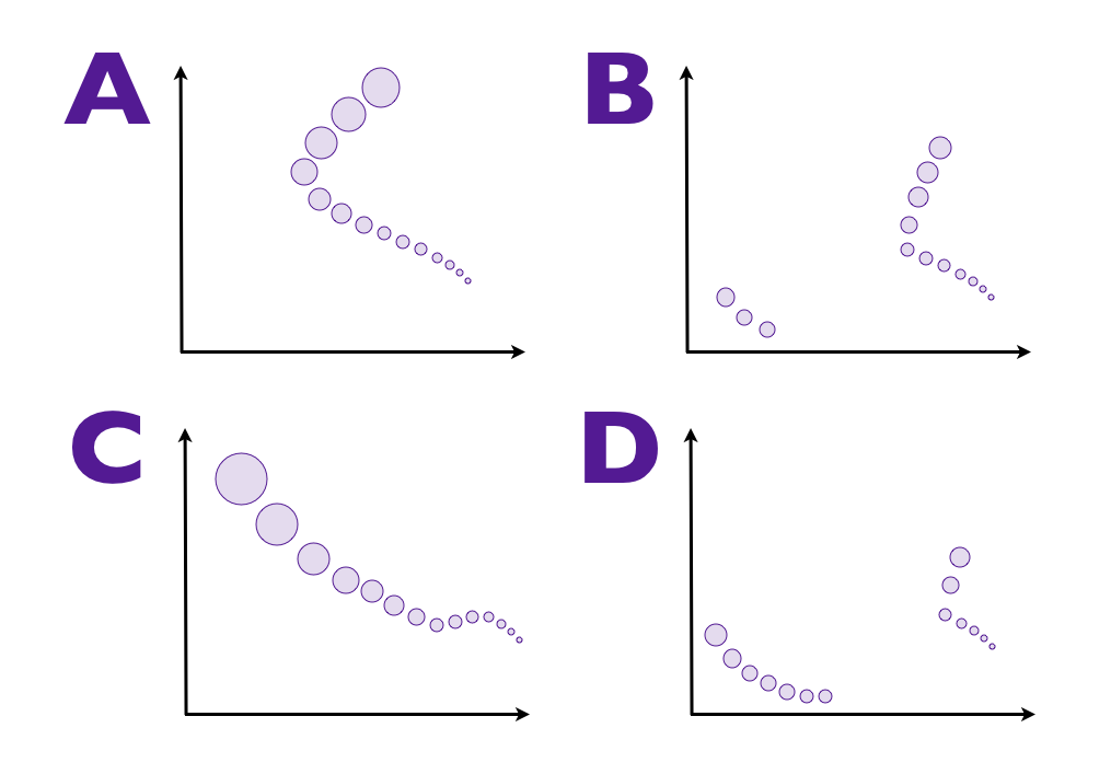 Shown above is H-R diagrams with multiple stars plotted from the same stellar cluster. Which H-R diagram shows the oldest cluster.