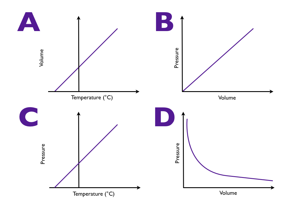 For a fixed mass of gas, which graph shown best represents Charles's Law?